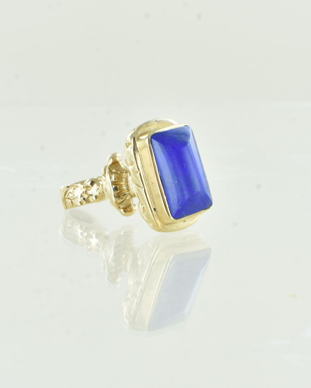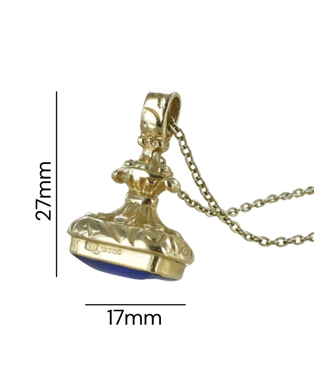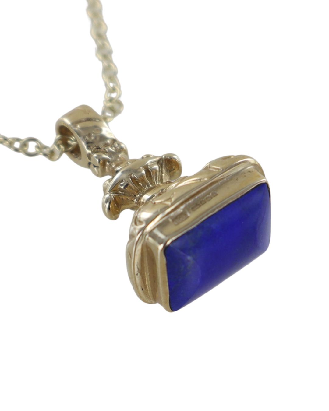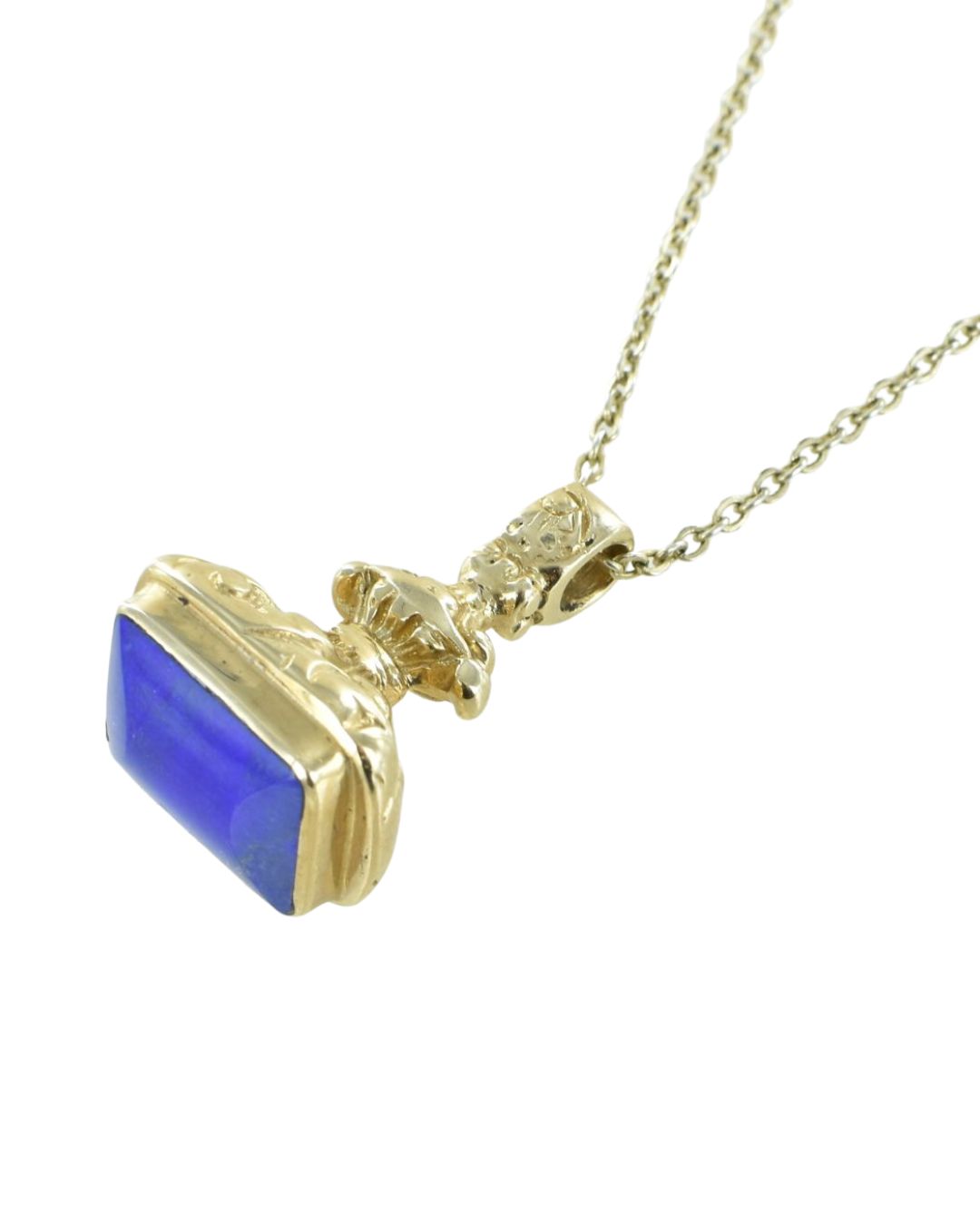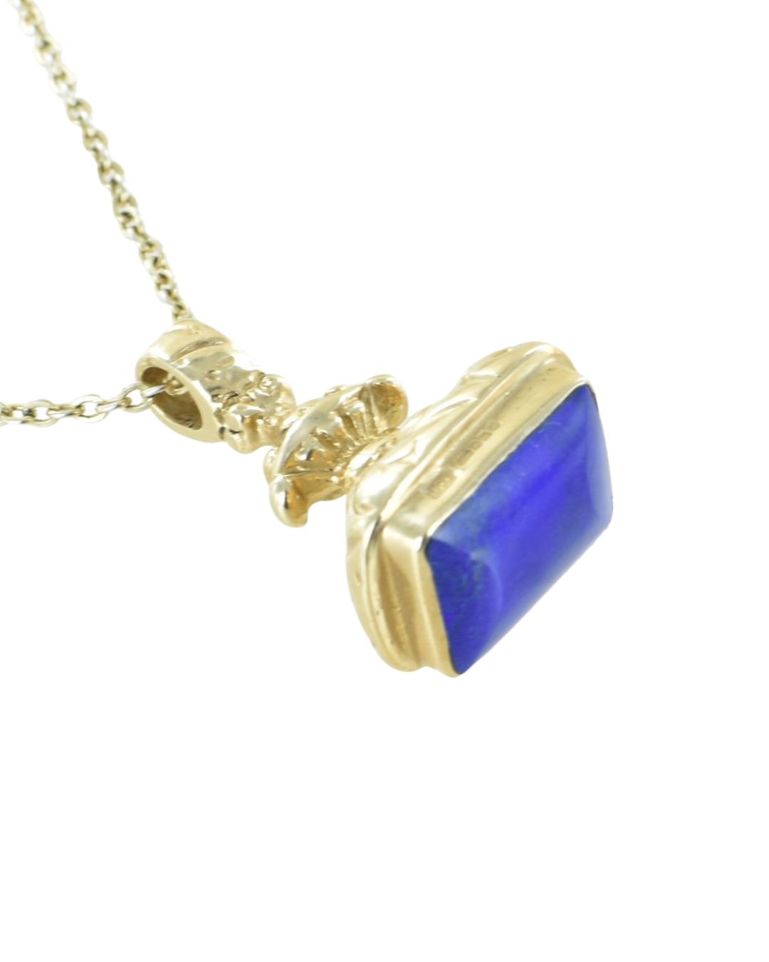 Classic Rectangular shaped gemstone seal pendant. 9 carat seal shape set with lapis lazuli